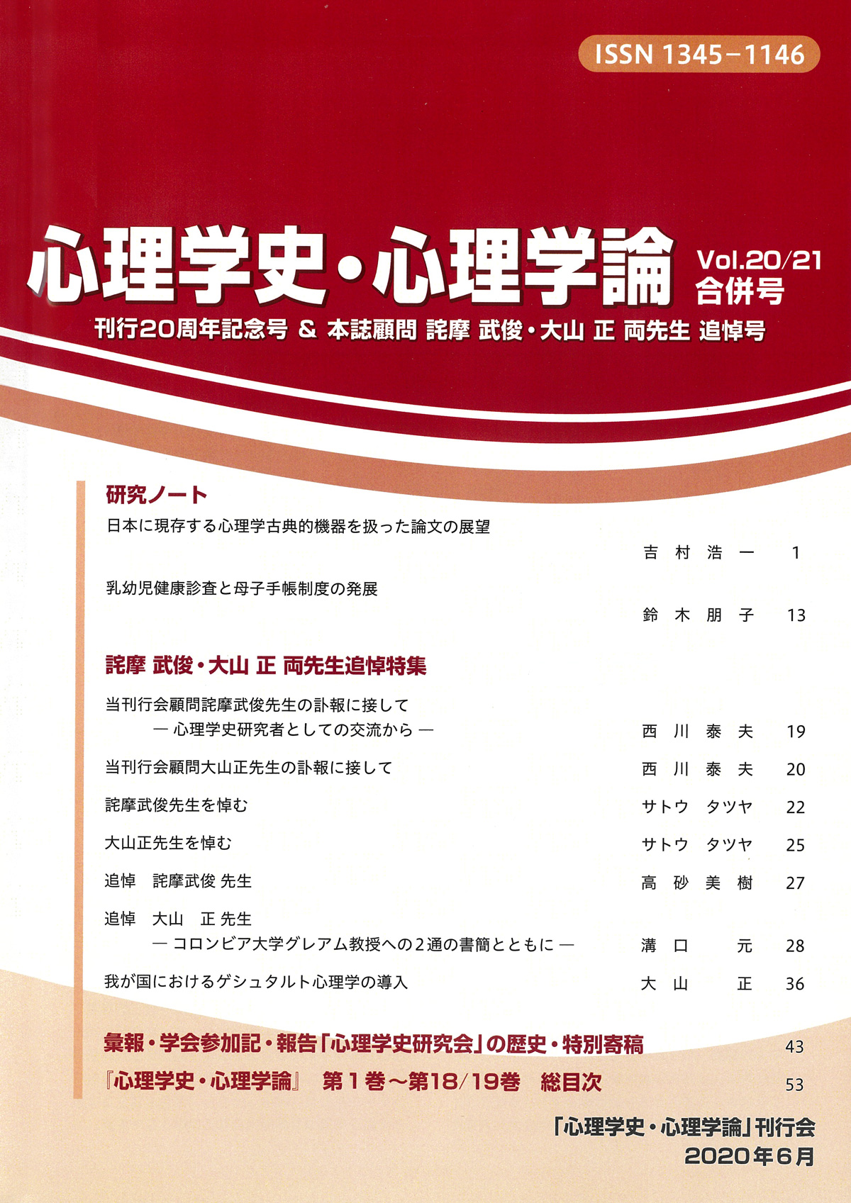 『心理学史・心理学論』 Vol.20/21 詫摩 武俊・大山 正 両先生追悼号 2020年